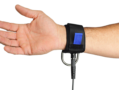 Comfortable velcro wrist strap includes a quick release pull tab.